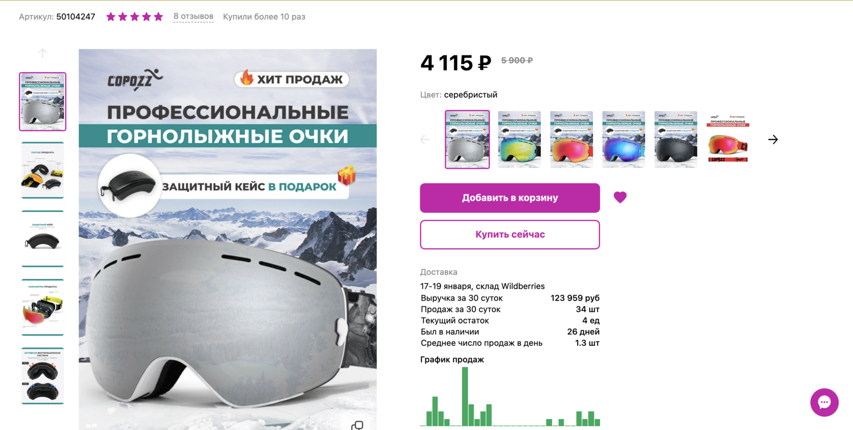 Когда к нам обратился клиент с запросом на продвижение горнолыжных масок на маркетплейсе Wildberries, задача стояла амбициозная: начать с полного нуля. У клиента не было продаж, позиция товара в каталоге находилась на 459 месте, а карточка товара располагалась на пятой странице категории. Вот как мы превратили этот вызов в историю успеха.