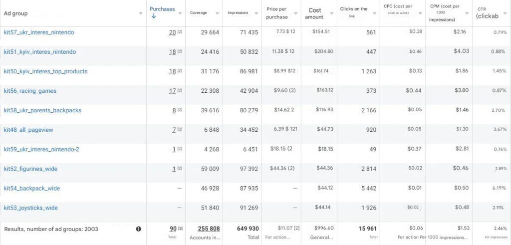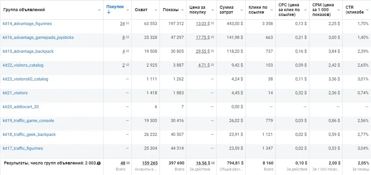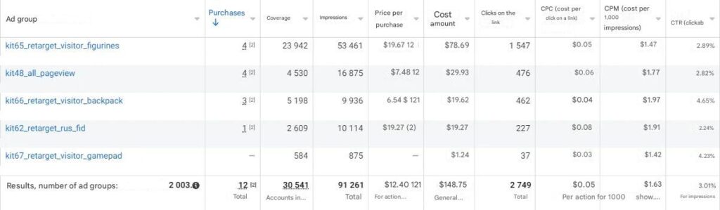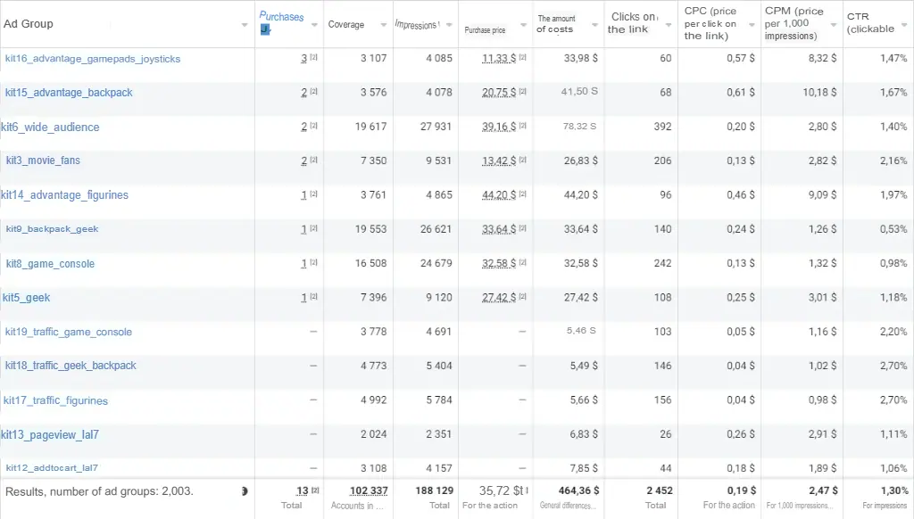 - Для конверсий – создали группы, основанные на анализе демографических и поведенческих данных подписчиков.