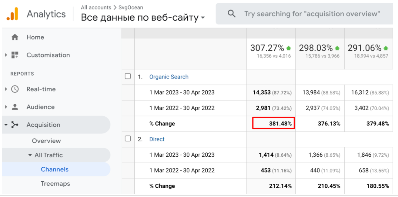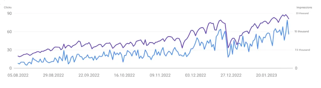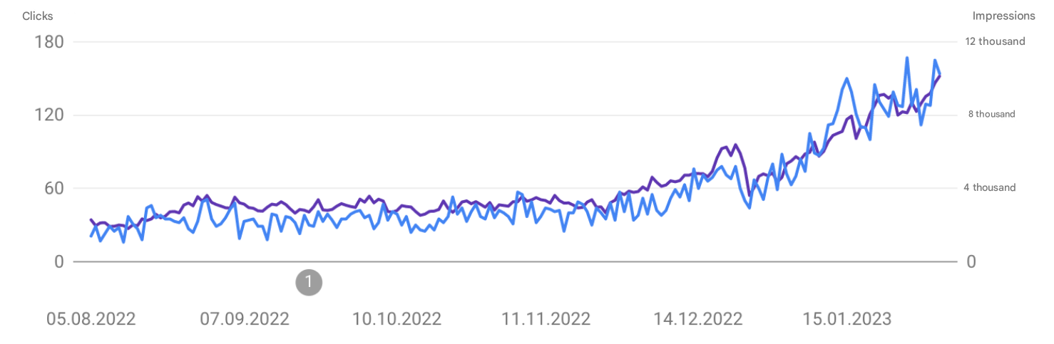 За полгода активной работы команды — SEO-специалиста, project-менеджера и владельца бизнеса — при отличной коммуникации и постоянной обратной связи, проект показал впечатляющую динамику роста:
