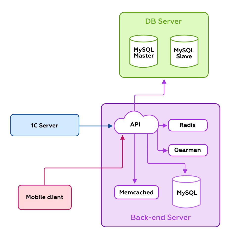 На старте проекта мы уже понимали бизнес-логику системы и набор данных, которые необходимо было синхронизировать с учетными системами. Однако точный формат и структура данных были неизвестны. Мы заранее предусмотрели возможность доработок и изменений в API для синхронизации, поэтому гибкость архитектуры back-end была для нас критически важна.