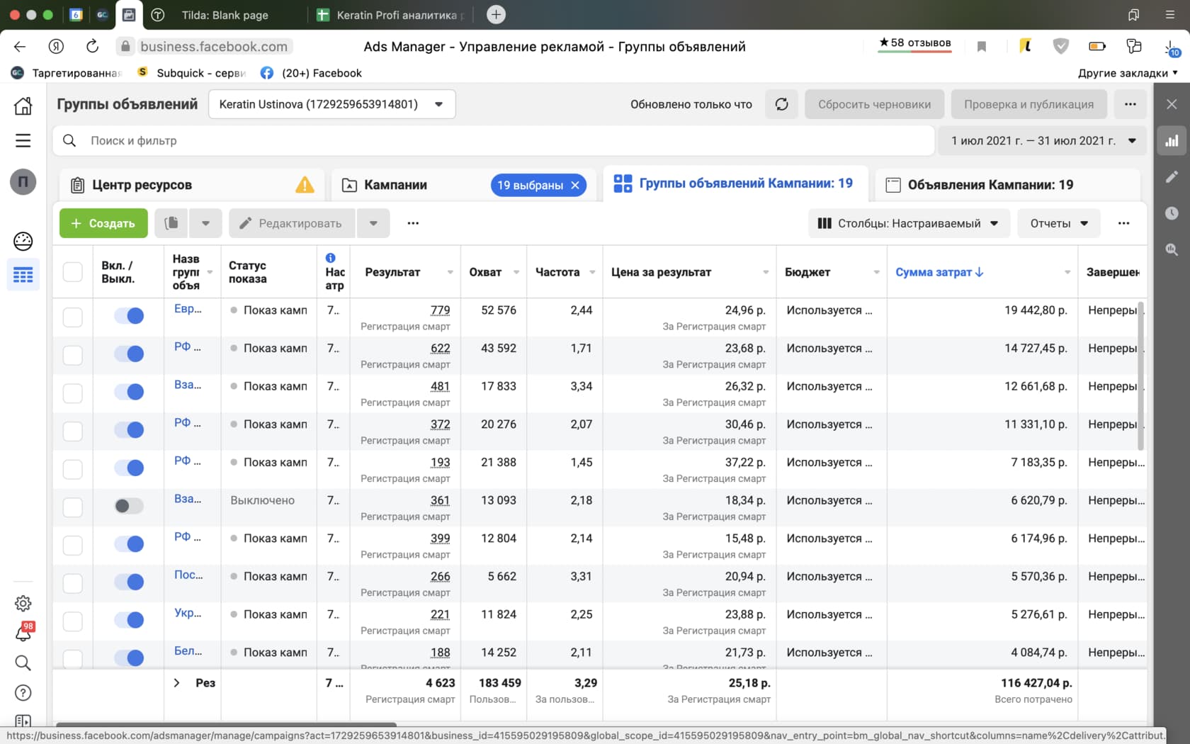 Высокая стоимость показов и целевых действий в рекламных кампаниях.