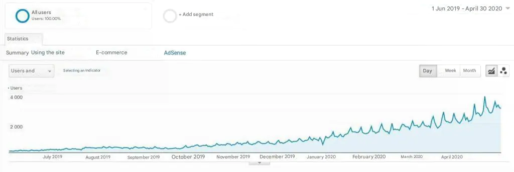 За счет seo и ссылочной стратегии на сайте e-commerce рост трафика с google органический от 150 до 3819 посетителей в сутки.